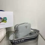 Replica Prada Leather bag with shoulder strap 1BH082 Gray