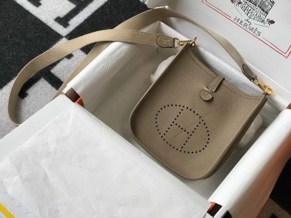Replica Hermes Evelyne Bag Designer Hermes Mini Crossbody Bag 20396 Gold Buckle Beige