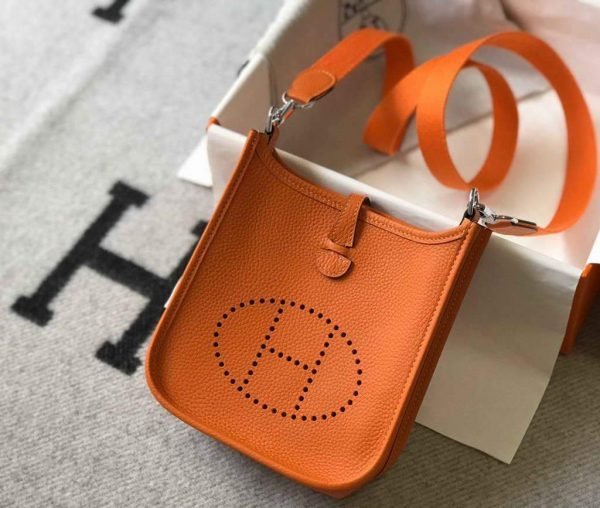 Replica Hermes Evelyne Bag Hermes Mini Crossbody Bag 20405 Silver Buckle Orange
