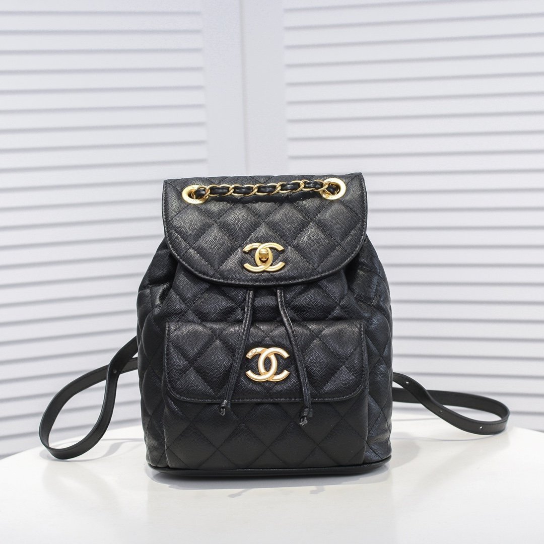 💋CHANEL new black calfskin Duma backpack, super wear-resistant lychee pattern calfskin, super cute, strong grass 🎉🎉 21.5x24x12cm Model number: 9051