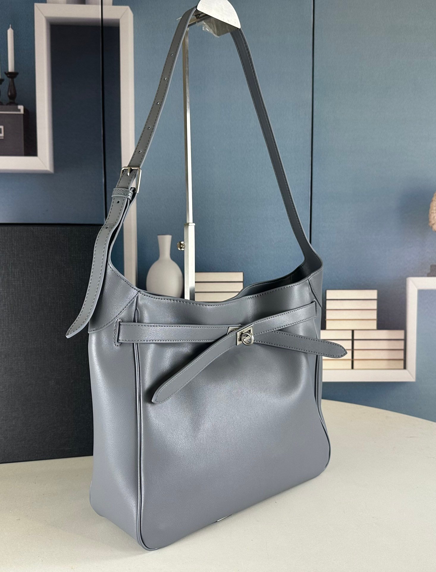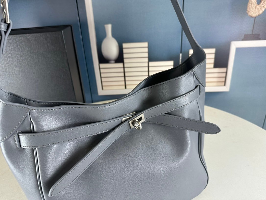 New Balenciag Winter 24 series Re-see handbag, single-shoulder bucket bag, made of top-layer cowhide with visible texture. Adopting original hardware, it is minimalist, high-end and atmospheric. A handbag transformed from a motorcycle glove, hanging with fashion recreated from a key ring buckle. It gives off a lazy and御姐风 look when worn. Size: 30x25x10.
