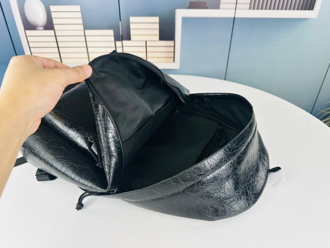 Balen new autumn and winter plain backpack, double shoulder bag🎒 large size. This season’s designs are getting more and more fashionable. Made of calf leather, it is wear-resistant and practical. The feel is also very good👍. Not to mention the capacity. It is a must-have for daily work and travel✈️. Size: 34x44x11. Black oil wax.
