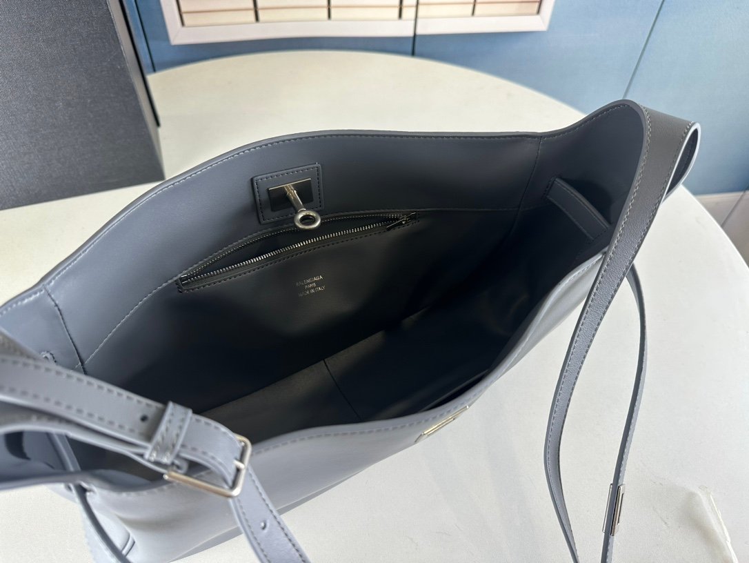 New Balenciag Winter 24 series Re-see handbag, single-shoulder bucket bag, made of top-layer cowhide with visible texture. Adopts original hardware. Minimalist, high-end and atmospheric. A handbag transformed from a motorcycle glove. Hanging with fashion recreated from a key ring buckle. It gives an indolent and domineering lady style when worn. Size: 37x21x10.