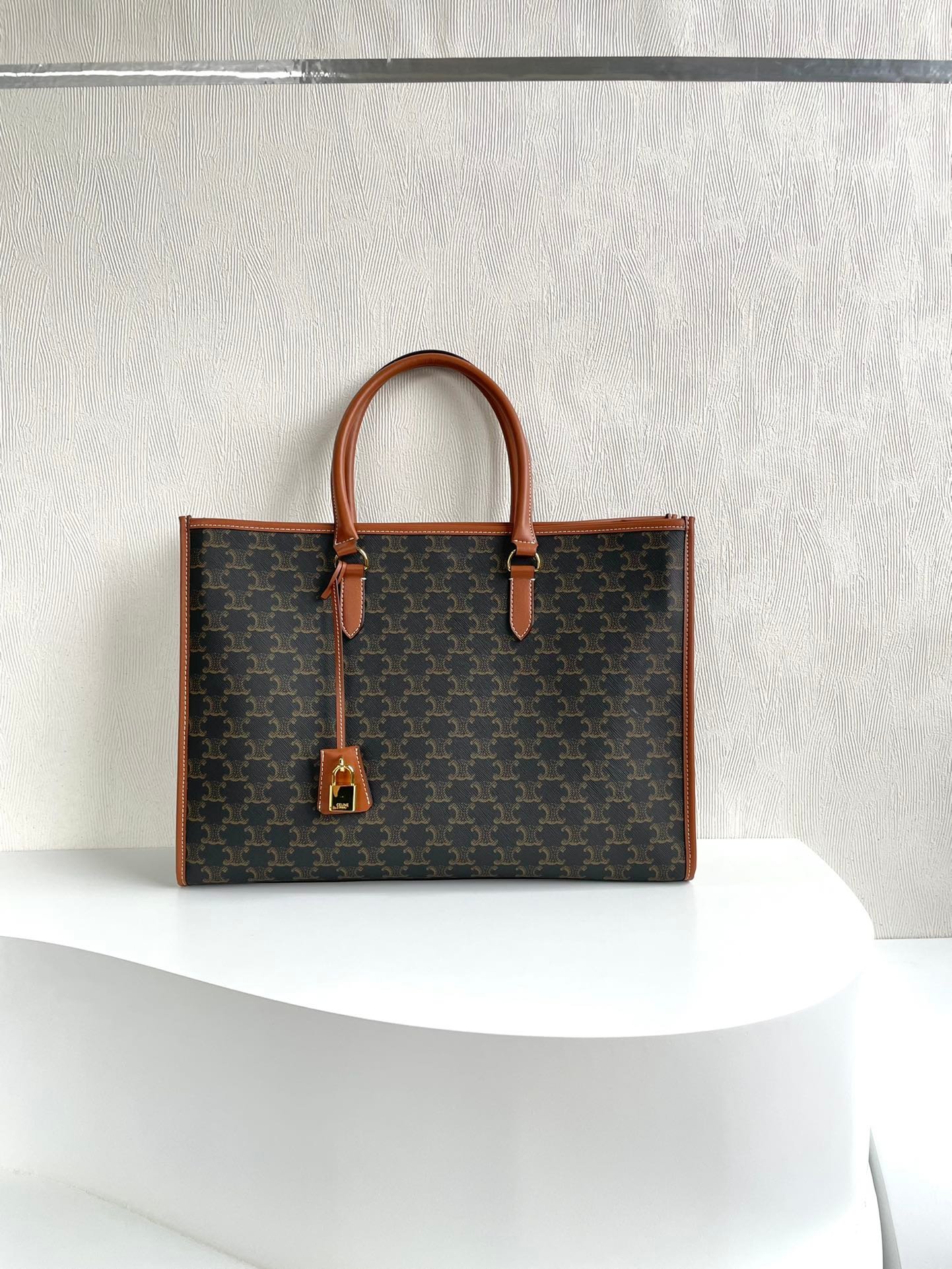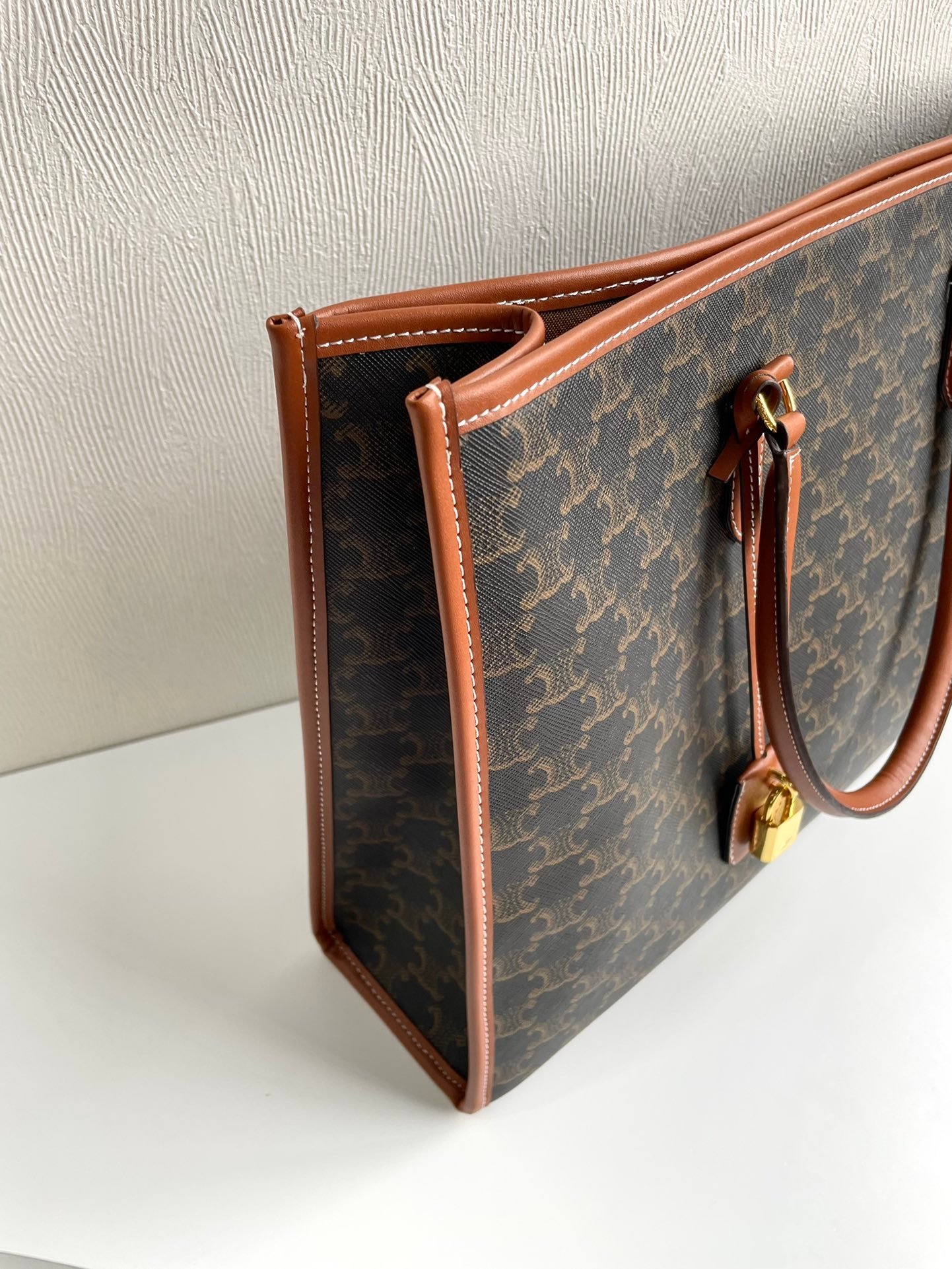 👑New CELIN product/TRIOMPHE CANVAS logo print and calfskin horizontal CABAS handbag.