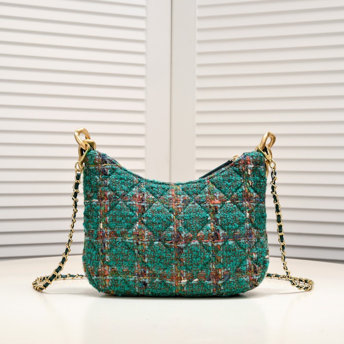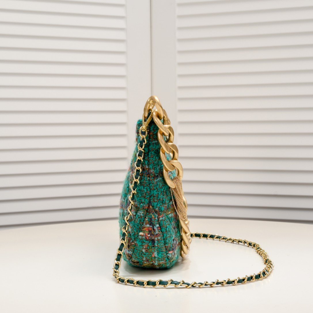 CHAN E1 💢 22 As a classic of the Chanel brand, Chanel is not only a fashion accessory, but also a work of art with collection value. Its design is classic and timeless, and the new models in each season will be innovated and improved on the basis of the classics, so that the old bags will not be outdated, but with the passage of time, more historical value and collection significance. 23A autumn and winter small hobo moss green woolen armpit bag fringed hardware 💗 with a diagonal span leather string chain is more practical