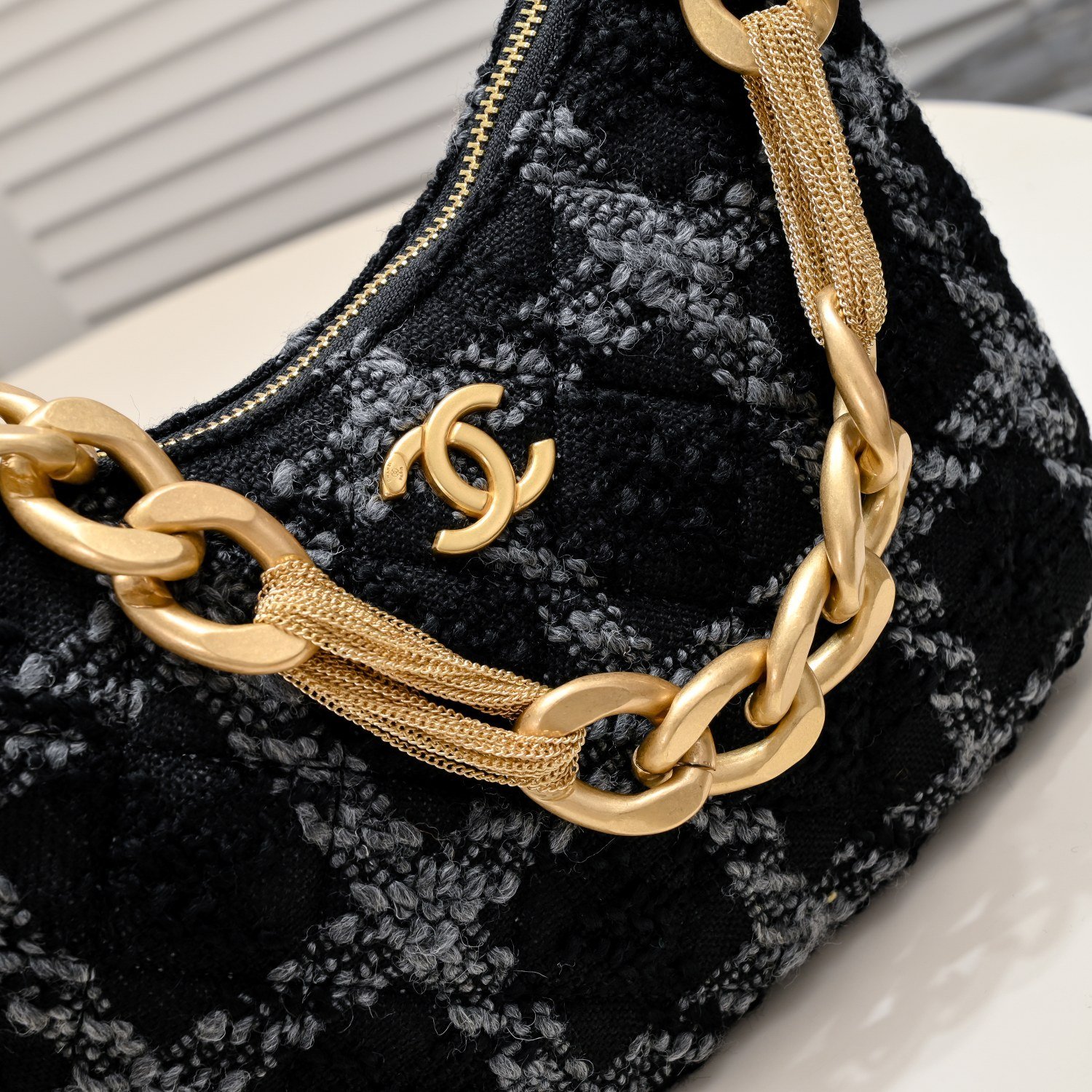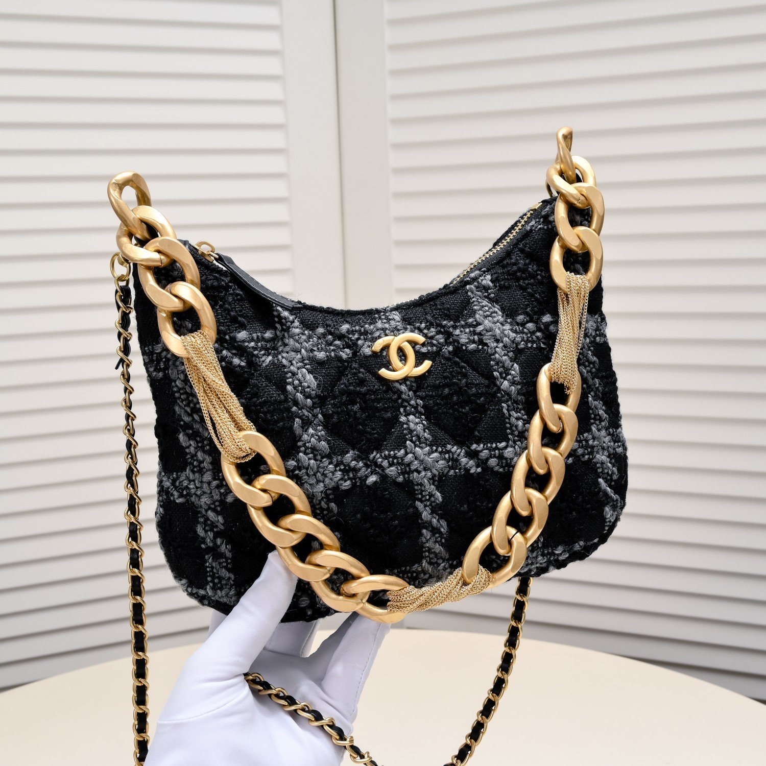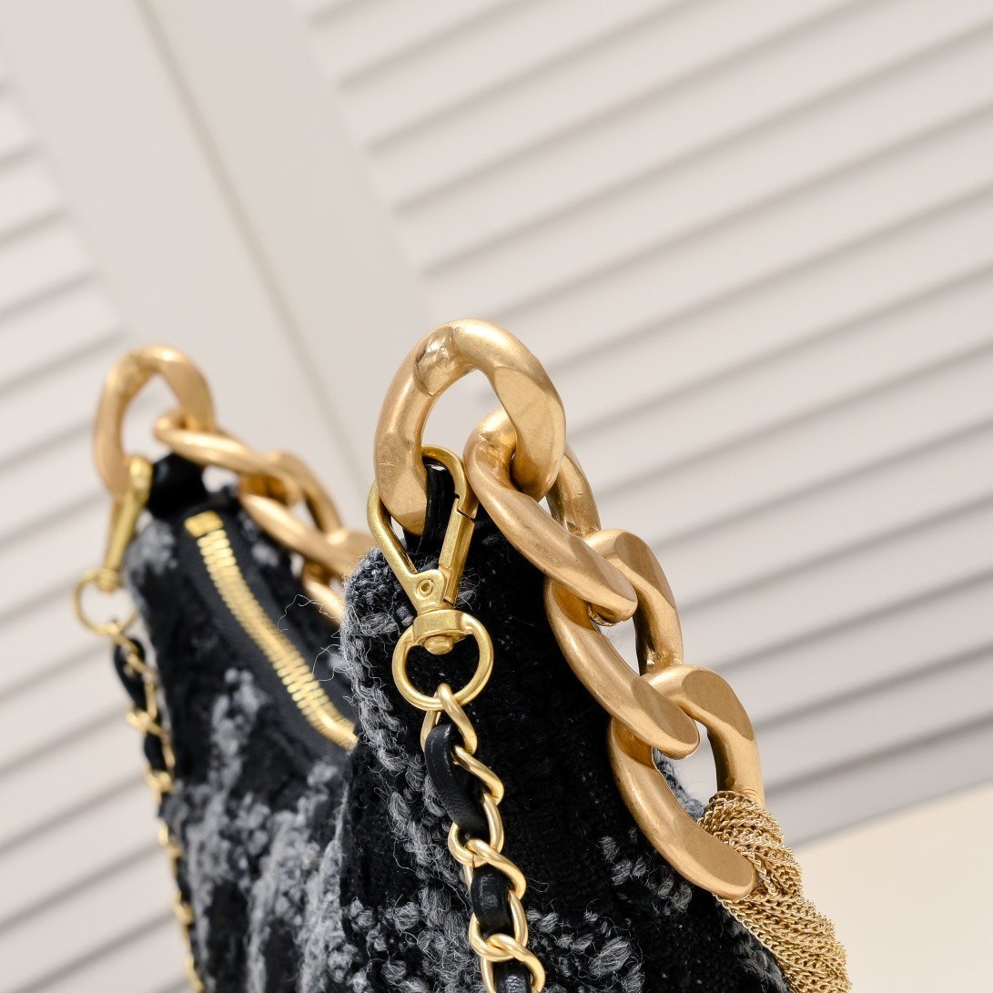 CHAN E1 💢 22 As a classic of the Chanel brand, Chanel is not only a fashion accessory, but also a work of art with collection value. Its design is classic and timeless, and the new models in each season will be innovated and improved on the basis of the classics, so that the old bags will not be outdated, but with the passage of time, more historical value and collection significance. 23A autumn and winter small hobo moss green woolen armpit bag fringed hardware 💗 with a diagonal span leather string chain is more practical