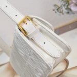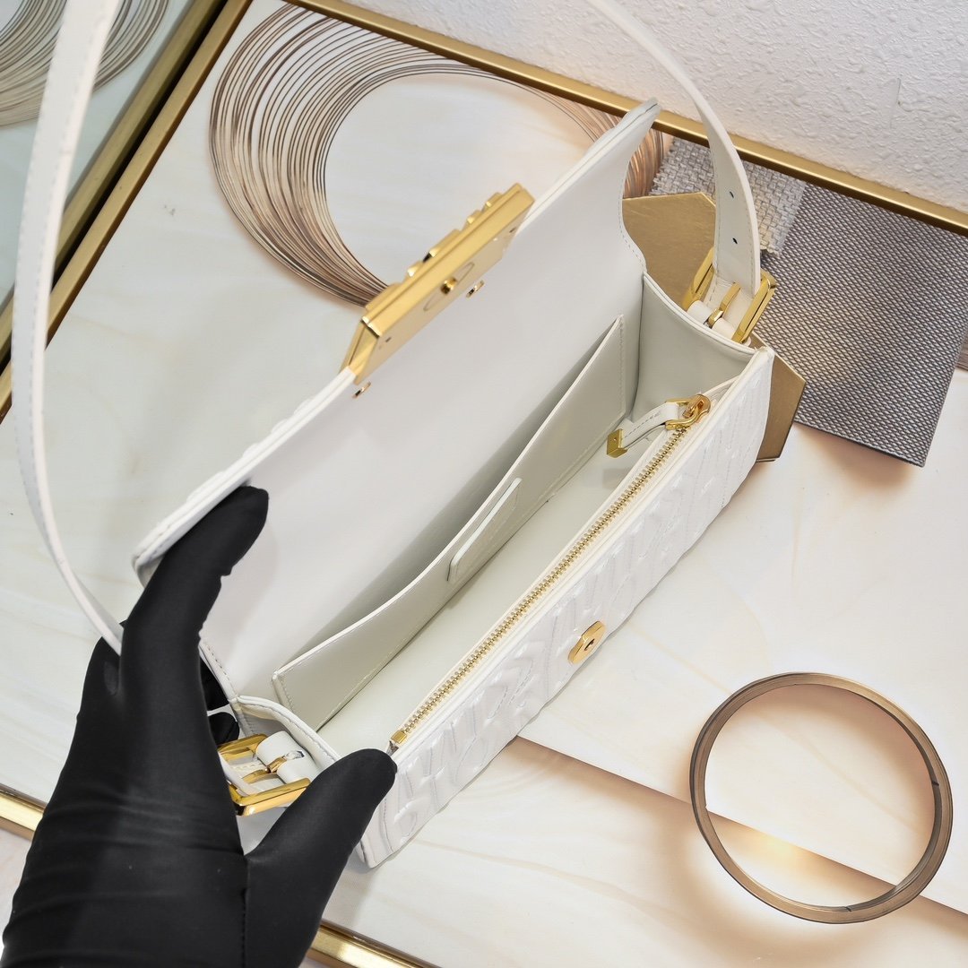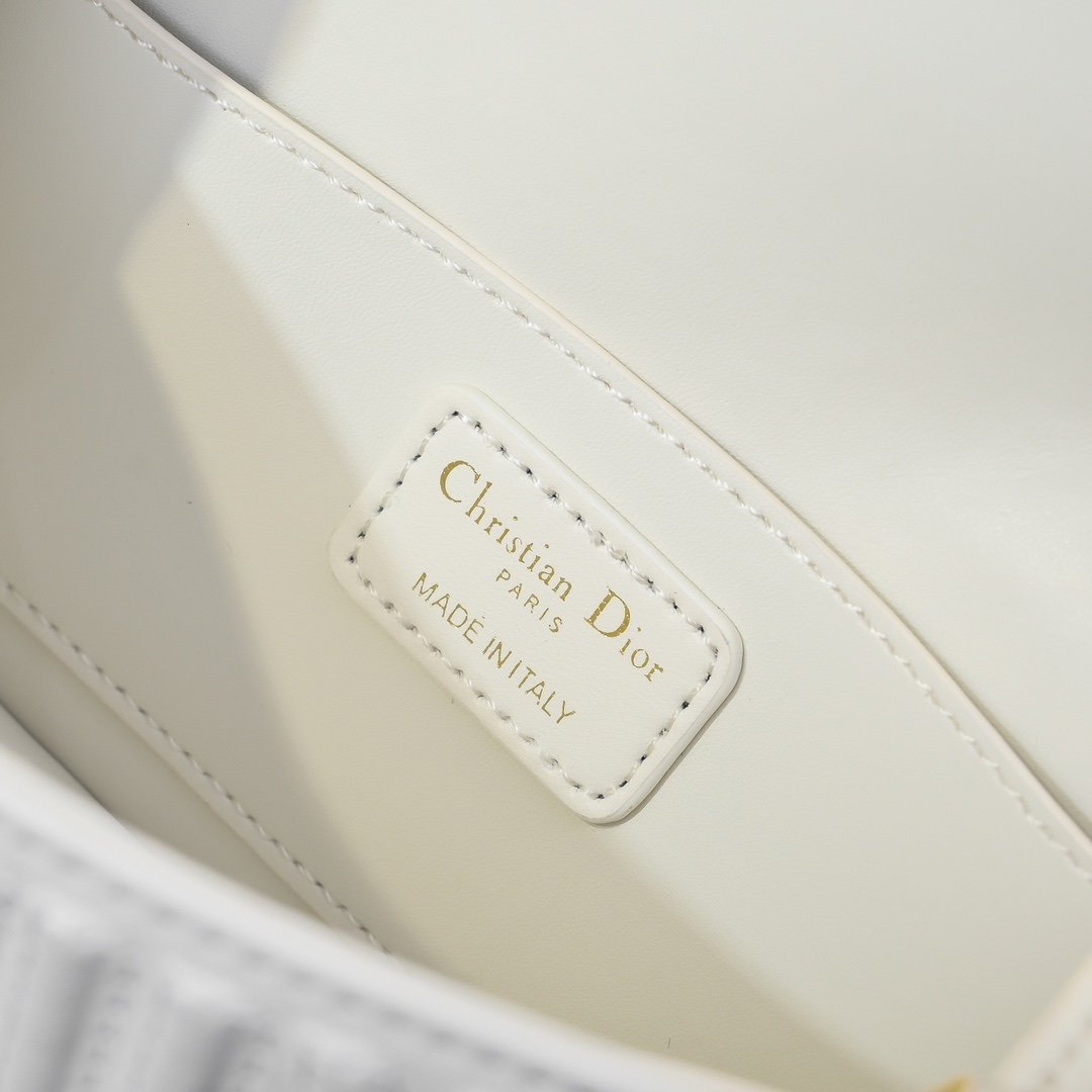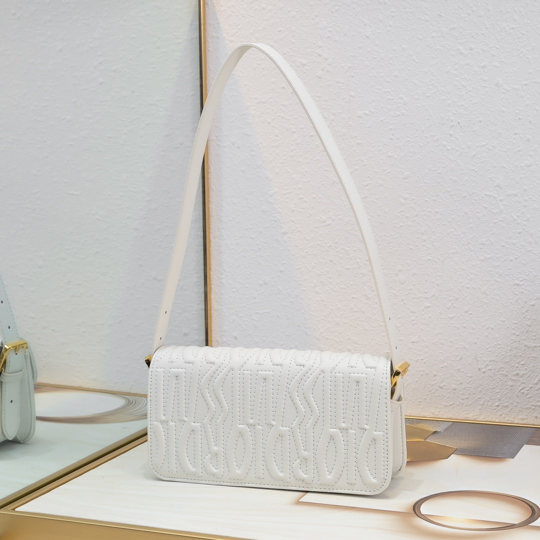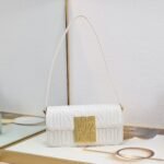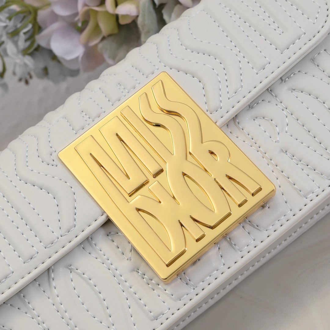 This Miss Dior flap handbag is a new product of the 2024 winter ready-to-wear collection, reinterpreting the modern elegance of Dior’s classic styles. Exquisitely crafted from milky white quilted cowhide leather and adorned with the classic Miss Dior Allover pattern of this series, inspired by the Dior design archives of Marc Bohan, and newly interpreting the fashion style of the 1960s in a modern style. Paired with a contrasting retro gold-finished fashionable metal plaque decorated with the Miss Dior logo, it showcases a timeless aesthetic style. Under the flap, the main compartment has a zipper pocket for easy storage of various daily necessities. With an adjustable strap, it can be carried on the shoulder to create a fashionable look exuding haute couture style.
