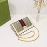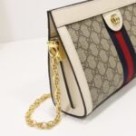 Upgraded version ❕ G home Ophidia series with inlaid webbing striped details for vintage style design. Structural shape, securely closed with magnetic buckle, leather piping, decorative collection details – double G accessories. Model: 503820 Color: brown leather/PVC, size: 26x17x8cm Details GUCCI