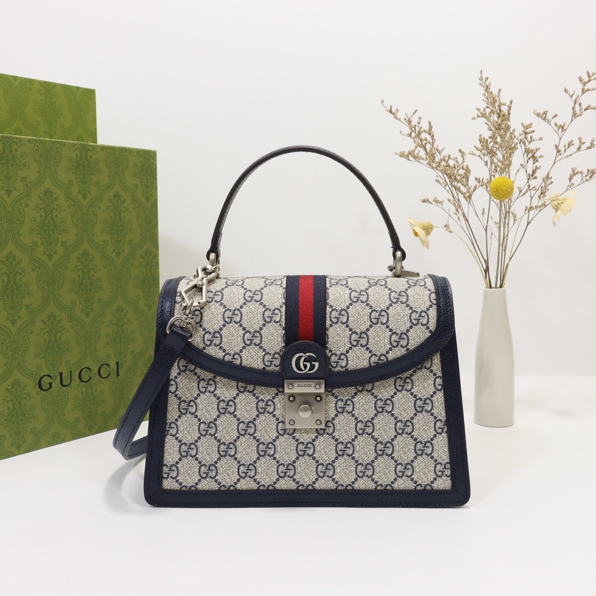 [G] The Ophidia collection 🌲 brings stunning new products every season. This handbag is one of the Epilogue collection and comes with a detachable shoulder strap. The square retro shape fuses the brand’s classic striped webbing and double G shape accessories. The accessory is inspired by the Gucci collection belt buckle design in the 1970s. It has become one of the brand’s symbols after modern aesthetic interpretation. The handbag is made of the brand’s signature double G pattern canvas. Model number: 651024 🐹 size: 25 × 17.5 × 7cm