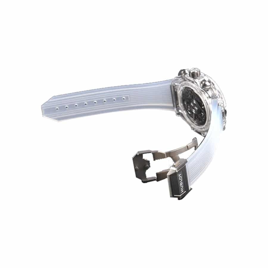 The Hublot Big Bang Unico Sapphire Rainbow 411.JX.4803.RT.4099 Replica is a luxury watch. It features a titanium case with a skeleton color and a gem-set bezel. The watch is powered by an automatic HUB1242 movement with a 60-hour power reserve and a precision of -3/+3 seconds per day within COSC certification limits. The dial is a skeleton color with mixed indices and 904L stainless steel stick hour markers and resin stick hands.