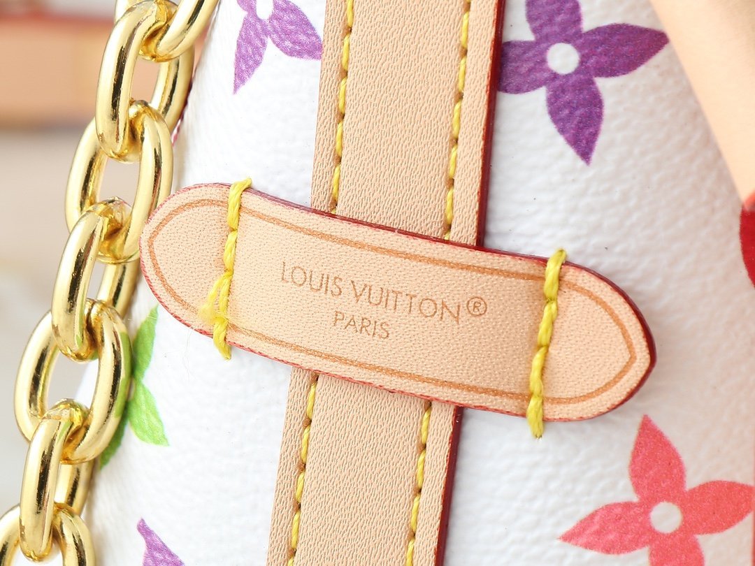 The upgraded M13014 M24860 CarryAll BB bag is crafted from Monogram canvas, featuring Monogram flowers embellished with eye-catching chains, perfect for both day and night occasions. The leather plaque and tie closure complement each other beautifully, while the zippered interior pocket makes it convenient to access credit cards. Dimensions: 26.0 x 17.0 x 10.0 cm
