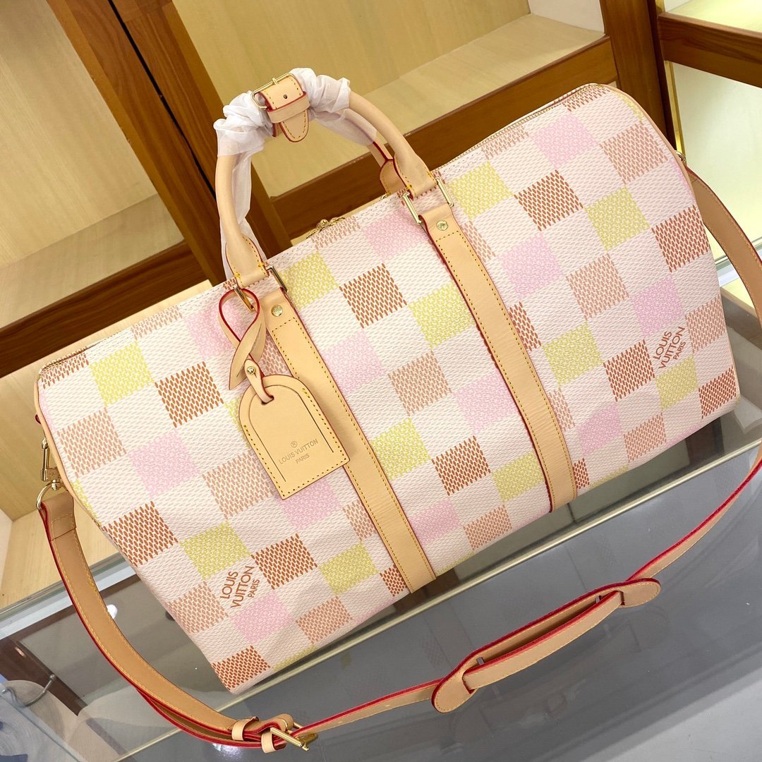 Keepall is a classic in Louis Vuitton’s travel bag series. This large Keepall has a monogram canvas body and is equipped with a detachable leather shoulder strap and a detachable leather document holder. Size: 50.0 x 29.0 x 23.0 cm.