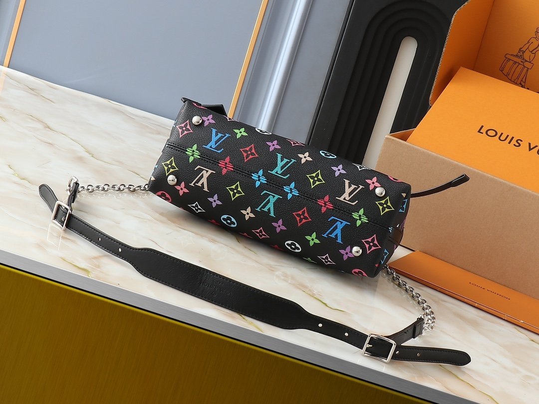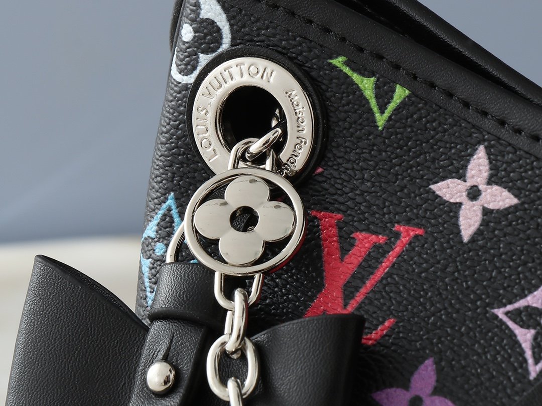 The upgraded M13014 M24860 CarryAll BB bag is crafted from Monogram canvas, featuring Monogram flowers embellished with eye-catching chains, perfect for both day and night occasions. The leather plaque and tie closure complement each other beautifully, while the zippered interior pocket makes it convenient to access credit cards. Dimensions: 26.0 x 17.0 x 10.0 cm
