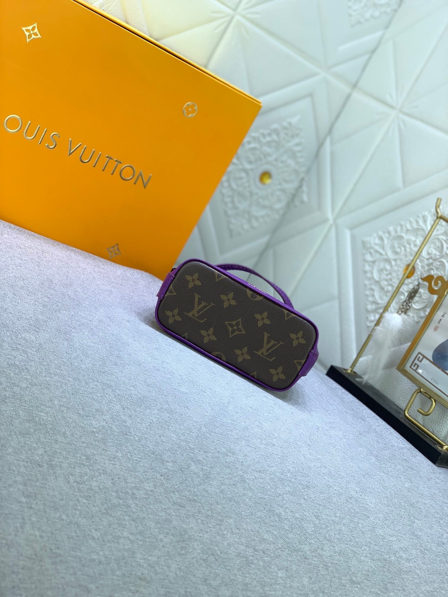Mini shell bag series. New launch Nano Alma handbag. The Nano Alma reproduces the symbolic Alma bag in a miniature version. Louis Vuitton’s signature Monogram canvas material coordinated with decorations of natural leather. A delicately crafted item that combines traditional charm and modern functionality. When the double zipper is opened, the interior design with surprisingly ample storage space is revealed. With two leather handles and an adjustable and detachable shoulder strap, multiple styles can be created.