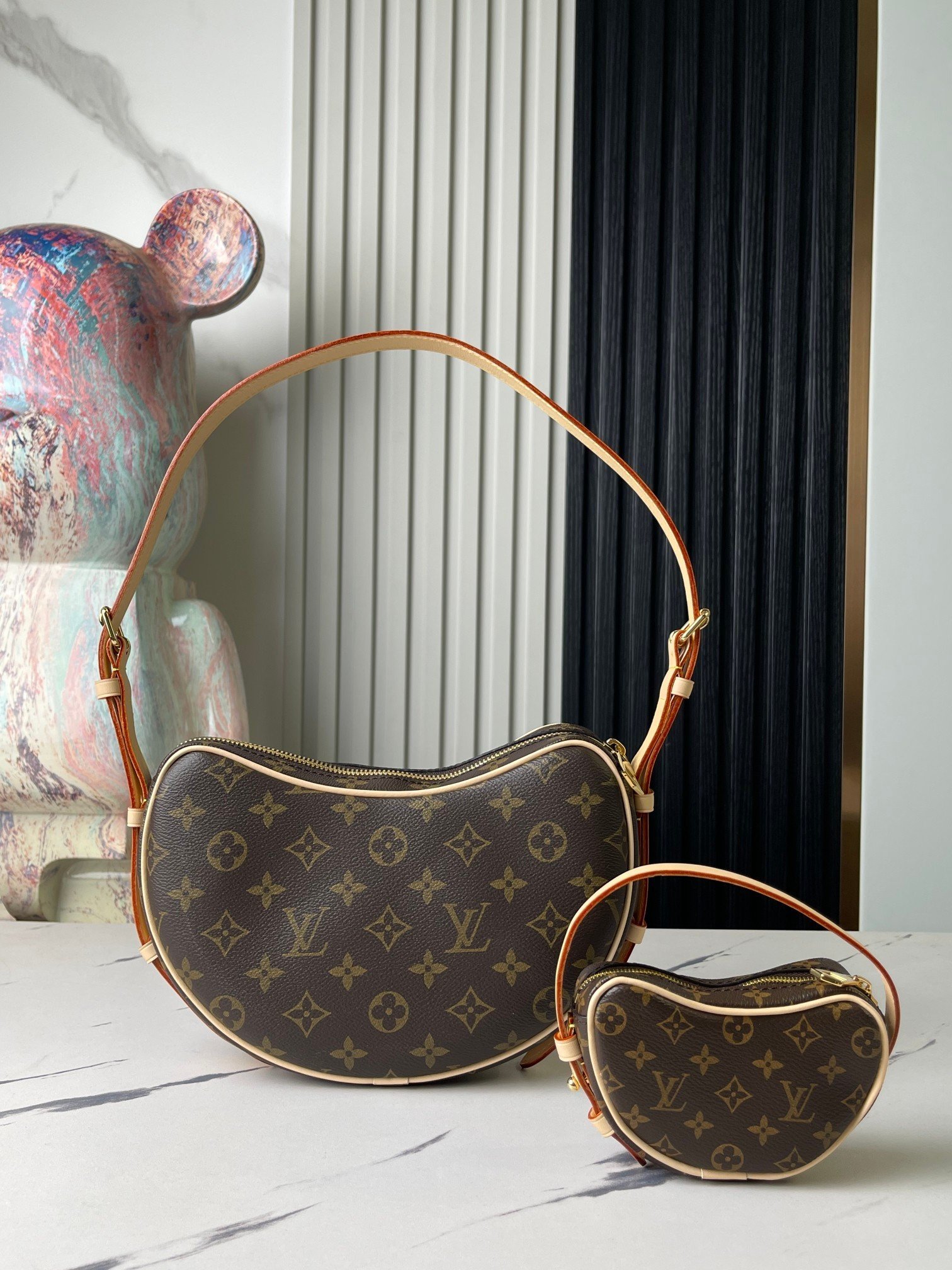 This AAAAA quality bag ✨ [Top original order, exclusive real shot] M46828 presbyopia, upgraded anti-fouling leather, bowl bean bag series Croissant MM croissant bag 2024 early spring series launched croissant bag, similar to the pea bag 20 years ago, two-piece pea bag Arc bag Underarm bag shoulder bag, small change bag can also be used as an extra pocket. Monogram Zjh classic canvas adds more lively and vivid feeling. The matching is almost absolutely perfect! Size: 21 X 7 X 5cm