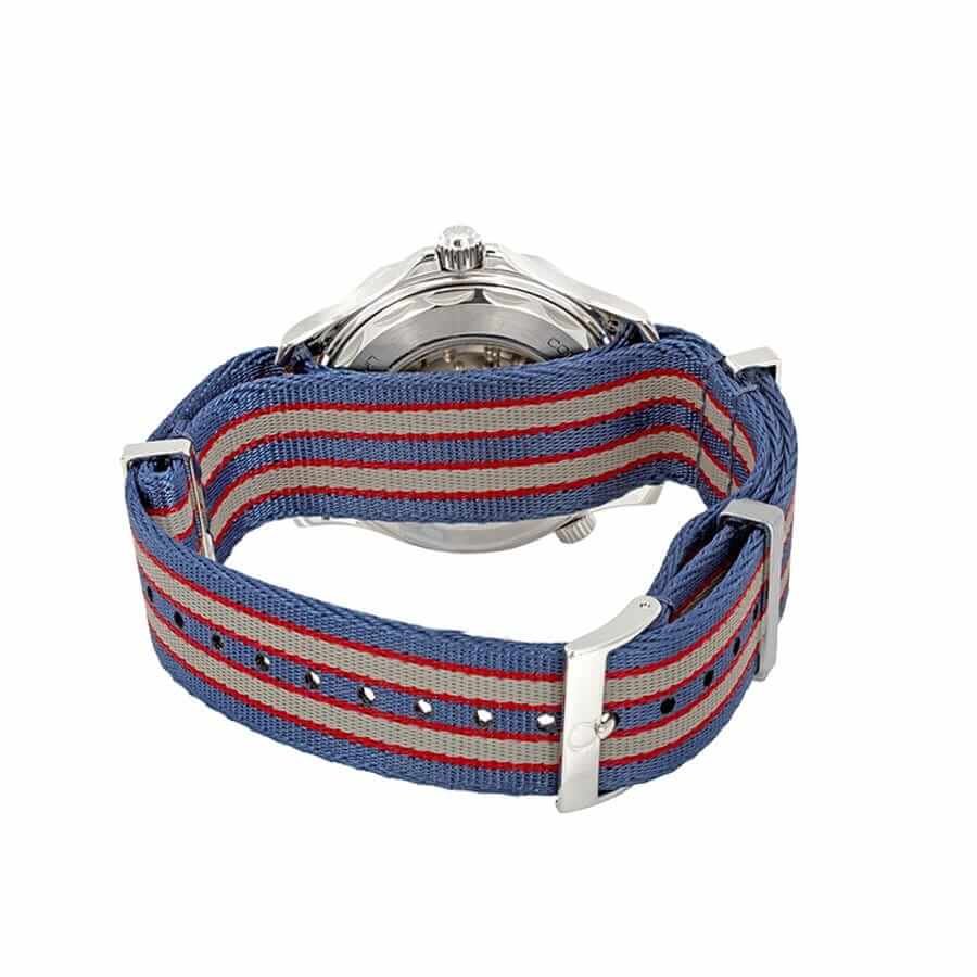 The Omega Seamaster Planet Ocean 215.32.46.51.01.001 Black Dial Replica is a high quality watch. It features a 904L stainless steel case and bezel. with a blue and red bezel color. The crystal is made of sapphire. and the case is 41.00 mm in size. The bracelet is made of fabric. with adjustable links and a 904L stainless steel push button folding clasp. The dial is white with dot indices and 904L stainless steel stick hour markers.
