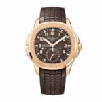 The Patek Philippe Aquanaut Travel Time Rose Gold 5164R-001 Replica is a high quality watch. It features a 904L stainless steel case and bezel in a rose gold color. with a sapphire crystal and a 40.80 mm size and 10.20 mm thickness. The movement is an automatic caliber 324 S C FUS with a power reserve of 60 hours and a precision of (-3/+3 sec/day) within COSC certification limits. The second hand has a sweep motion.