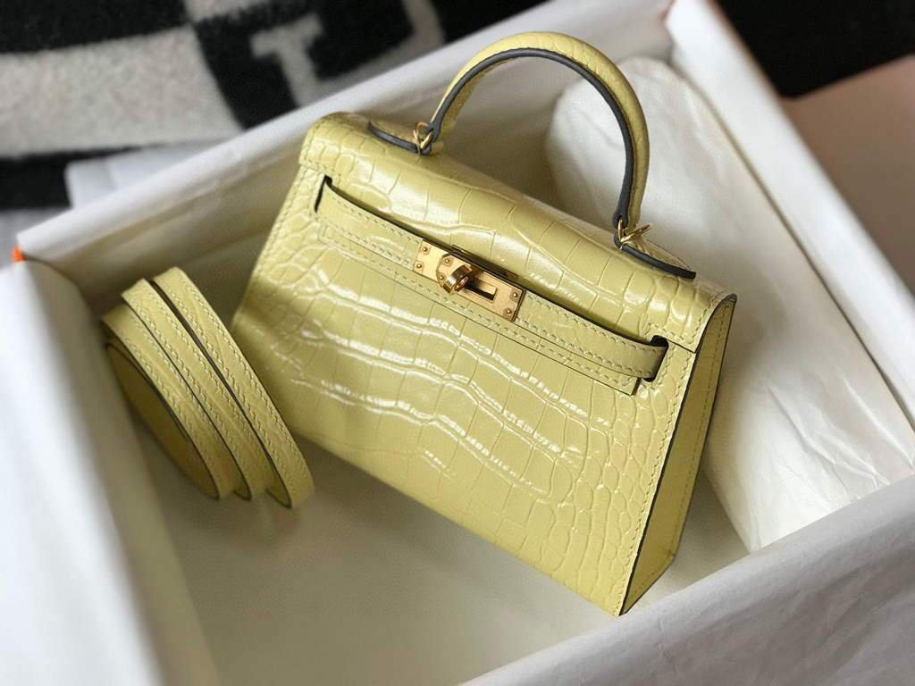 Hermes Kelly Bag Designer Hermes 19CM Shoulder Mini Bag Yellow 20451 on sale now.
