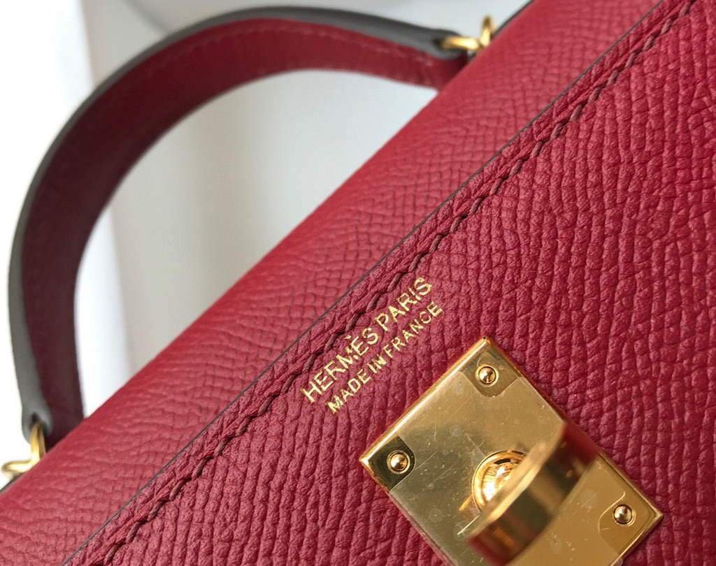 Replica Hermes Kelly Bag Hermes 19CM Epsom Shoulder Mini Bag Wine red 20462 on sale now. just need $518.00 and includes free worldwide shipping.