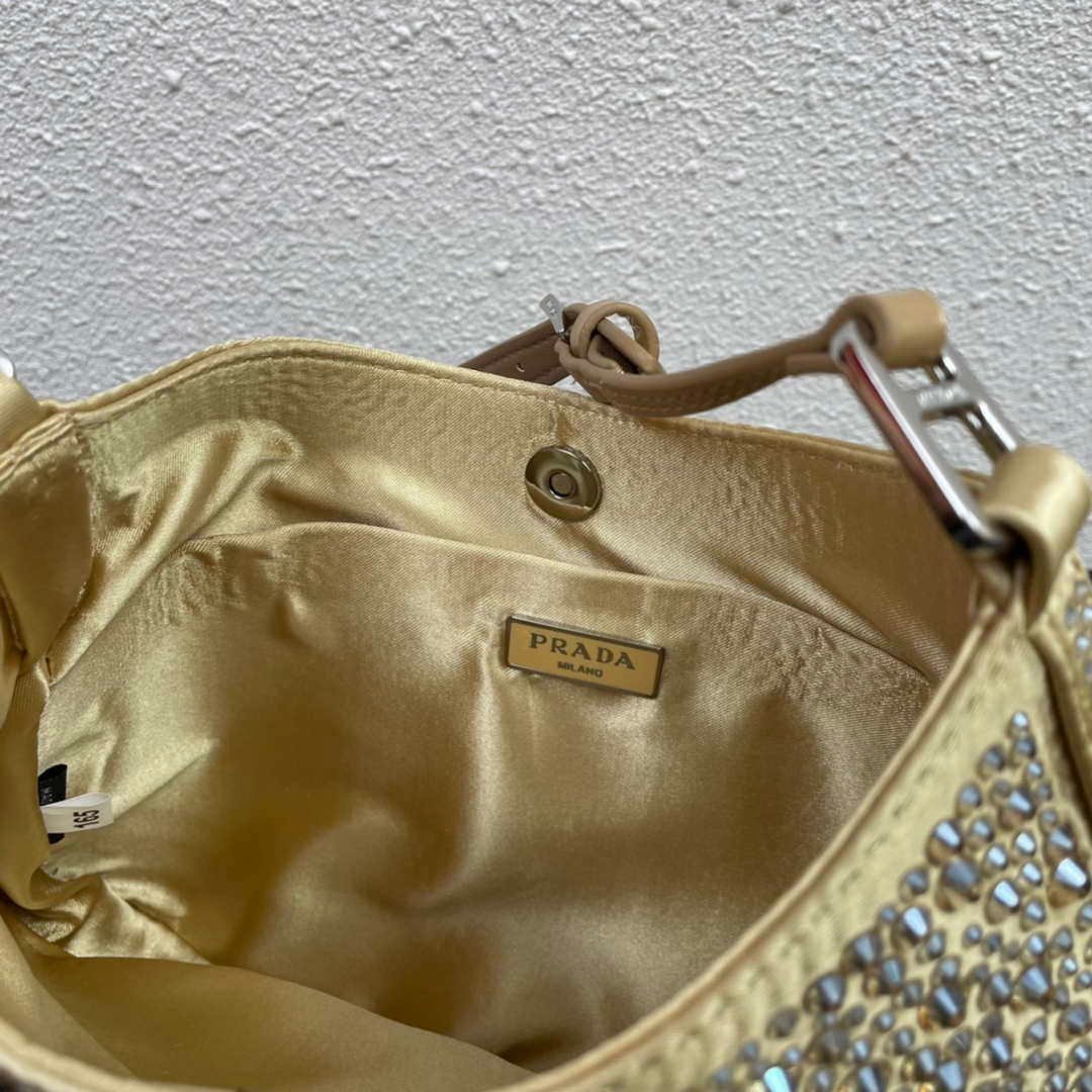 Prada 1BC169 Prada Cleo satin bag with appliqués Gold on sale now.