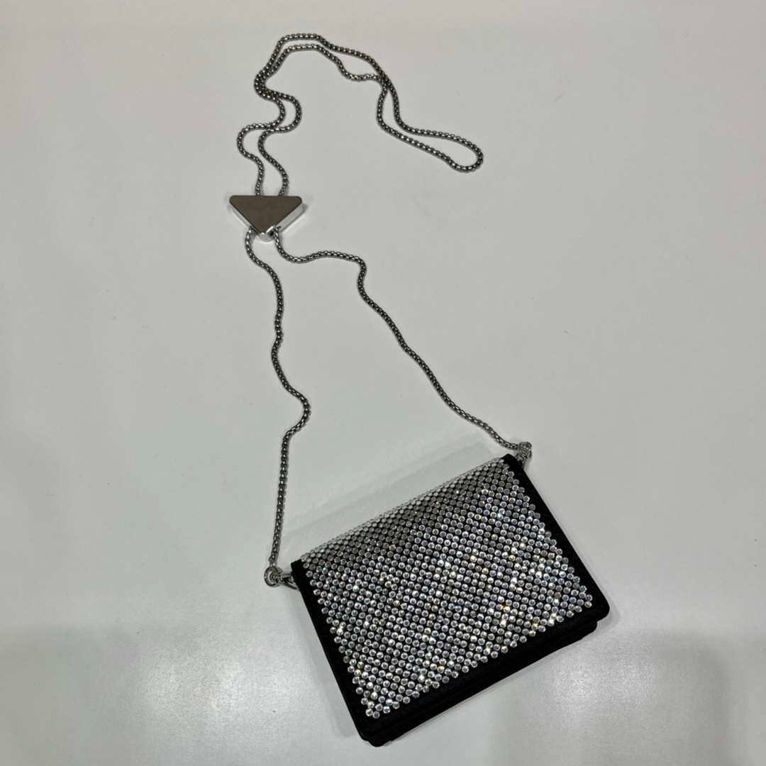 You will get an AAAAA quality knockoff Prada Crystal-studded card holder with shoulder strap 1MR024 Black Crystal with the best price. 1:1 made as the original. If you are not satisfied with the product you received. please be sure to contact us. we promise to solve the problem for you. We are confident that you will adore our products and that we can establish a long-term business relationship with each other.