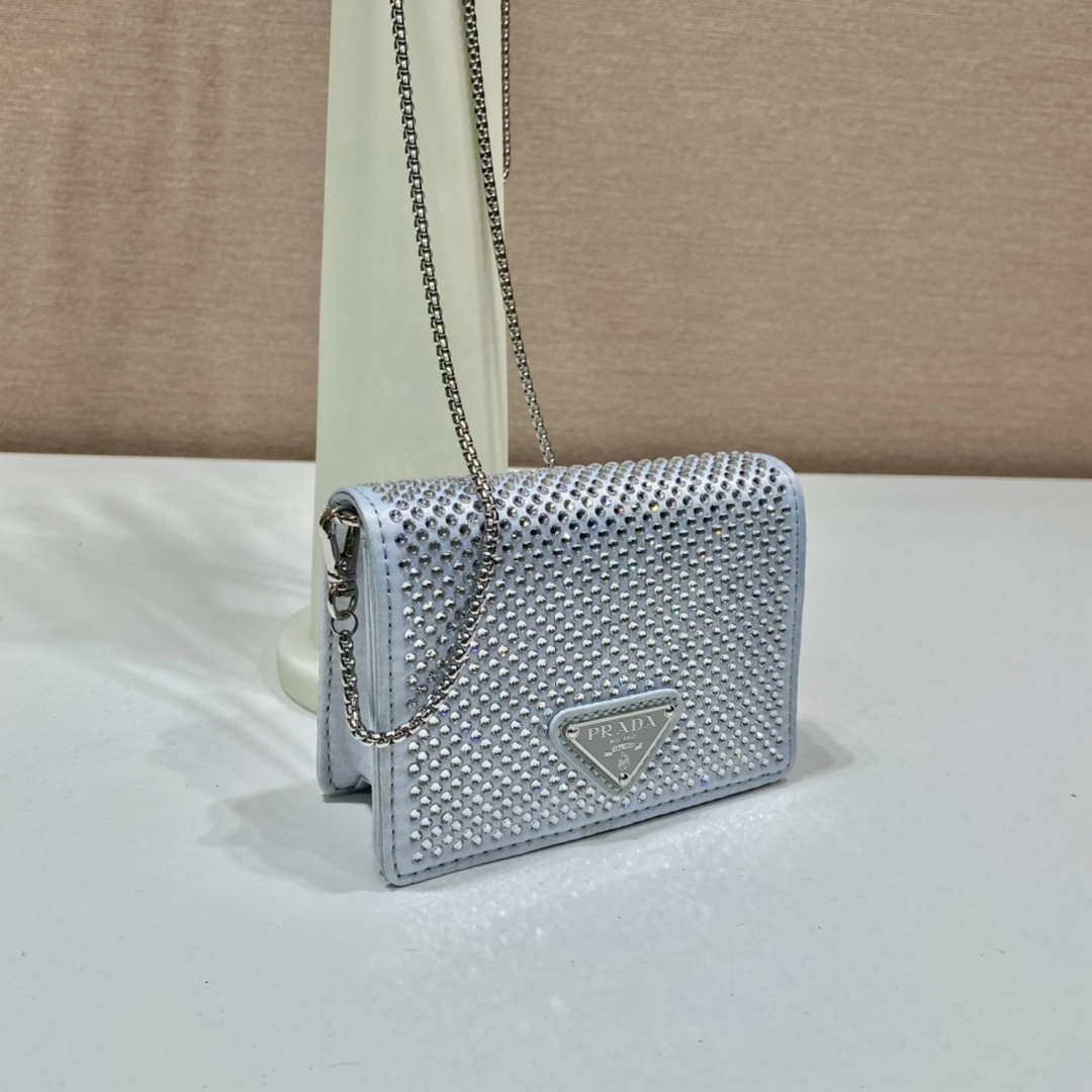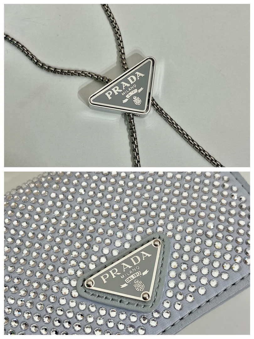 You will get an AAAAA quality knockoff Prada Crystal-studded card holder with shoulder strap 1MR024 White Crystal with the best price. 1:1 made as the original. If you are not satisfied with the product you received. please be sure to contact us. we promise to solve the problem for you. We are confident that you will adore our products and that we can establish a long-term business relationship with each other.