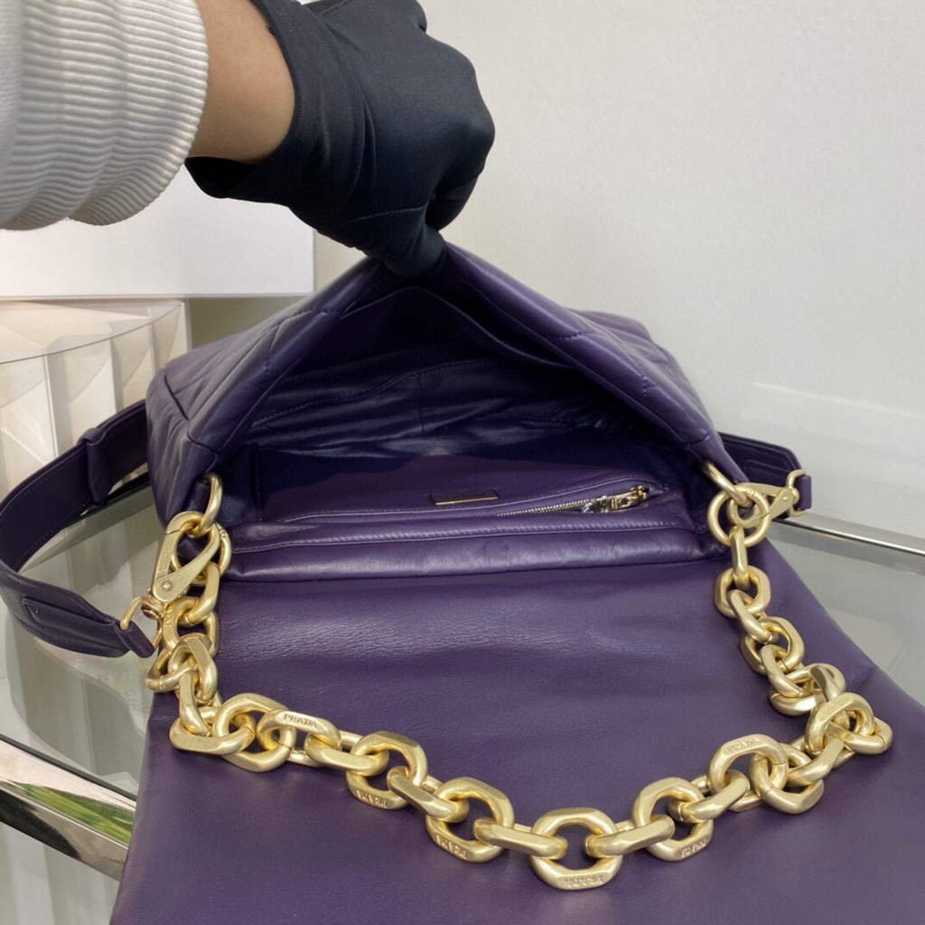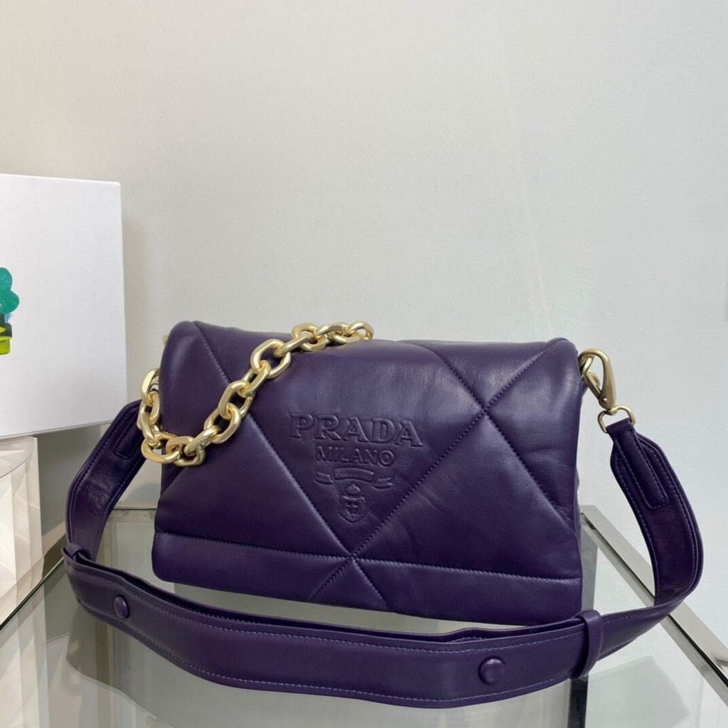 Prada Padded nappa leather shoulder bag 1BD306 Purple on sale now.