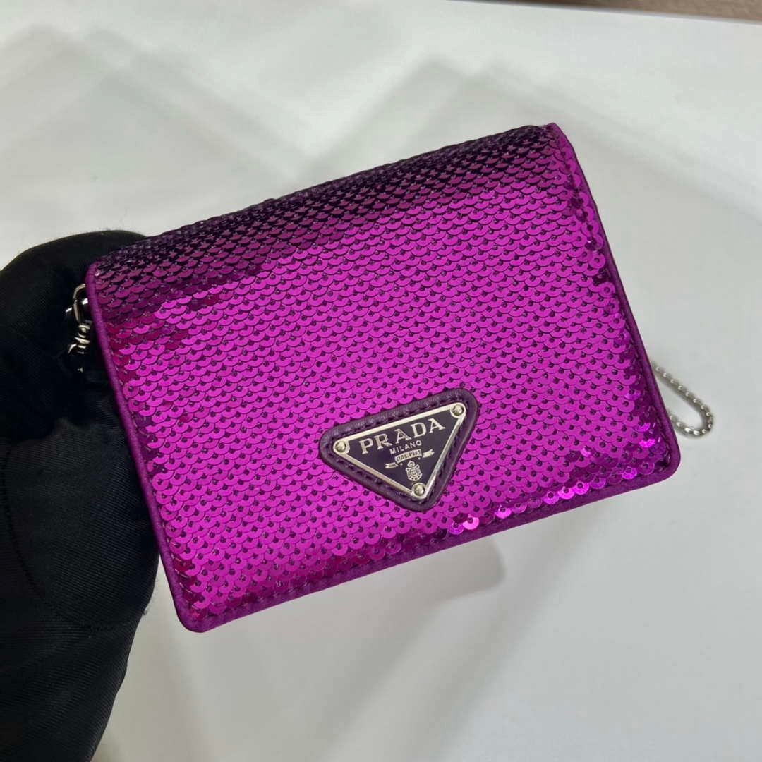 Replica Prada sequins-studded card holder with shoulder strap 1MR024 Purple