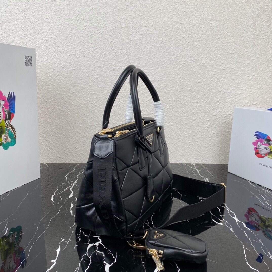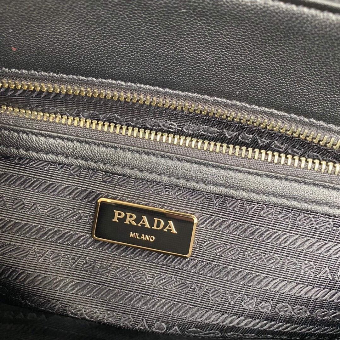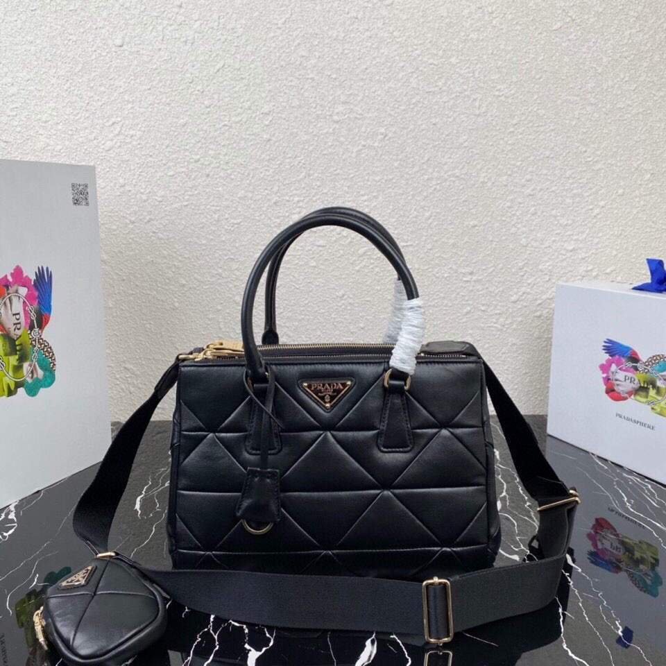 The Prada Galleria bag. the quintessence of timeless elegance. owes its name to the historic Prada store that Mario Prada opened back in 1913 in Galleria Vittorio Emanuele II in Milan. The small accessory made of Saffiano leather has a double handle and detachable shoulder strap that allow it to be worn as a shoulder bag or handbag. The bag stands out for its sophisticated simplicity and is decorated with the leather triangle logo and gold-tone metal hardware.
