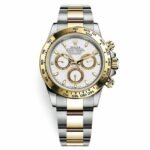 Introducing the iconic Rolex Cosmograph Daytona. a legendary timepiece renowned for its precision. functionality. and timeless design. The Rolex 4030 model. equipped with an automatic movement and caliber 3186. showcases the brand’s commitment to excellence. The 40mm case. made from premium 904L stainless steel. harmoniously combines gold and steel elements. creating an elegant and sophisticated look. The gold bezel adds a touch of luxury and complements the overall aesthetic.