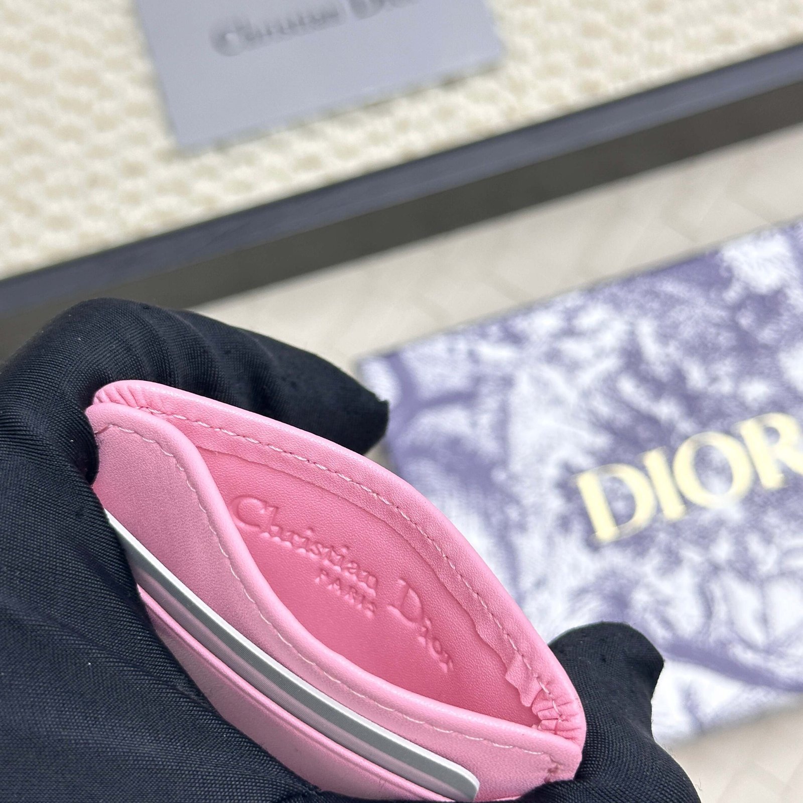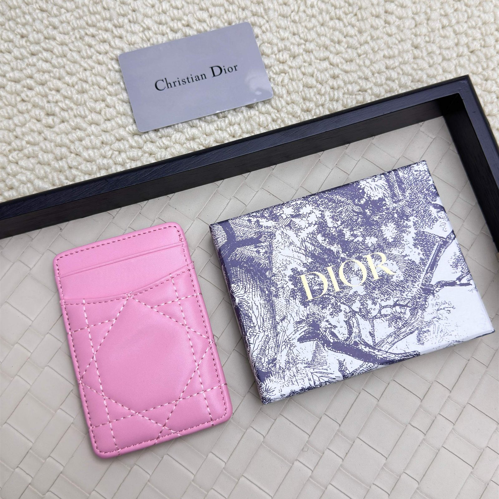Dior’s new card bag, size: 11 * 7.5 * 1, model 2379 is carefully made of soft cowhide, decorated with rattan plaid noodle thread, and the front is embellished with the “CD” logo. Elegant and exquisite,