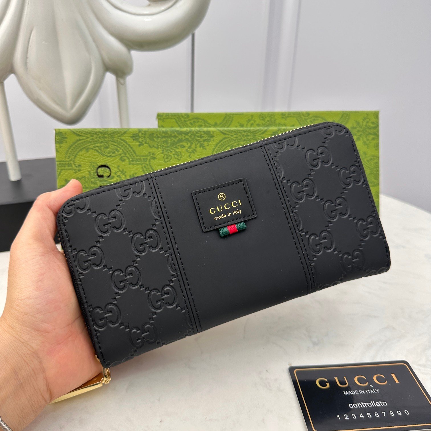 [Original] Gucci! [Model] 666070 small wallet. [Size] 19-10-2.5cm. [Color] Black. High-end quality (original single genuine product). [Material] Gucci counter purchasing classic! Original imported 🐄 cowhide! Authentic imported YKK marked hardware and zipper! Soft leather feel! Unique quality! Fashionable design! Complicated handmade structure.🎉 Essential for trendy men!