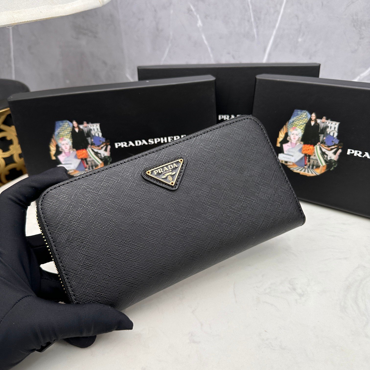 PRADA.👏👏 Classic small single zipper wallet💼. A classic work. Simple and fashionable. Italian top original cross-grained cowhide with excellent texture. Imported threaded lining. White steel metal hardware accessories! Exquisite stitching is evenly and neatly done. Exquisite workmanship. Size: 19x10x2.5. Colors: Glue-dripping triangular logo in plum red, bright red, blue, black, and pink. Number: ML201.