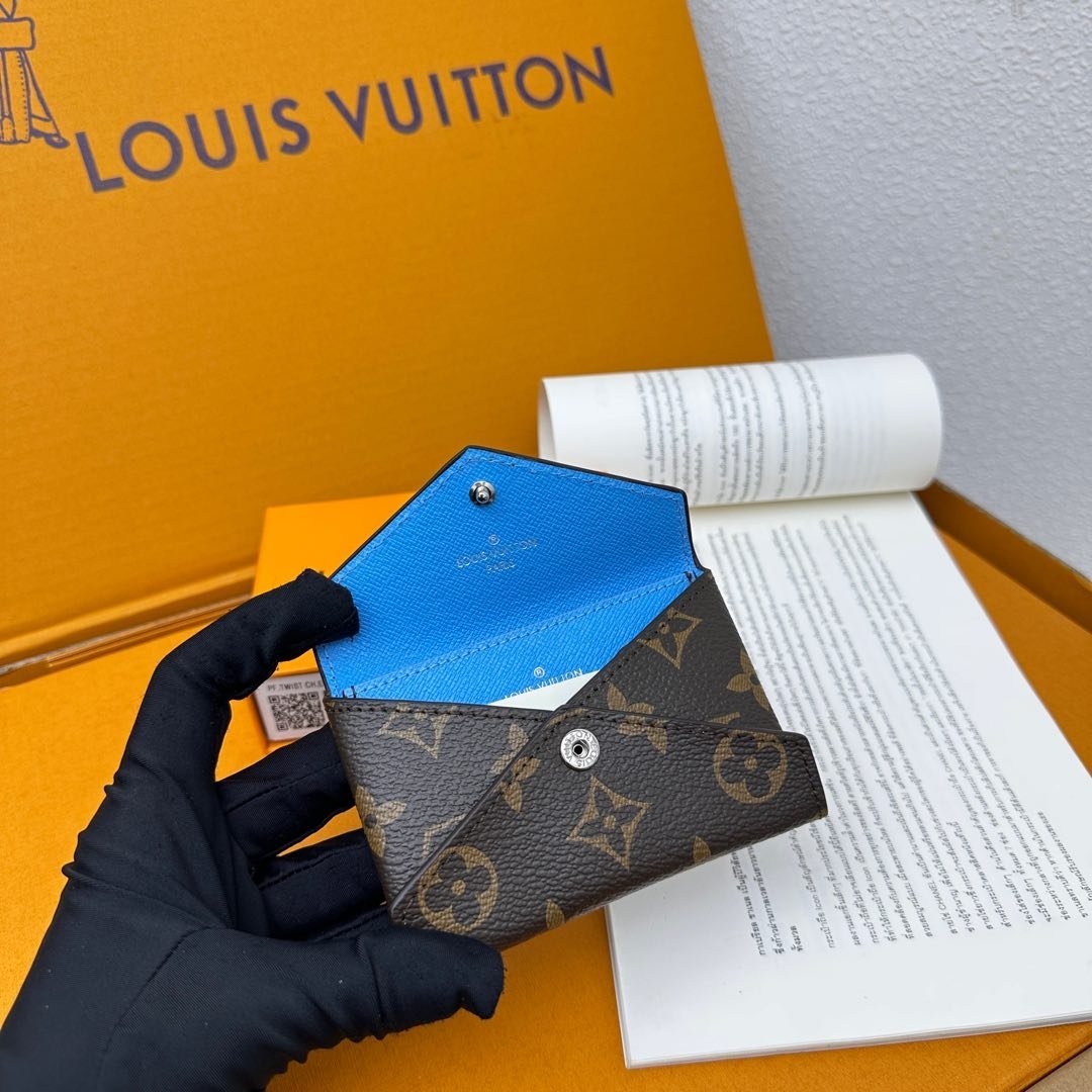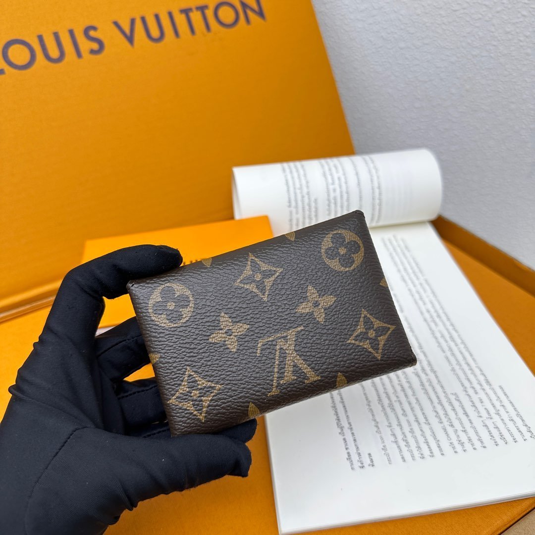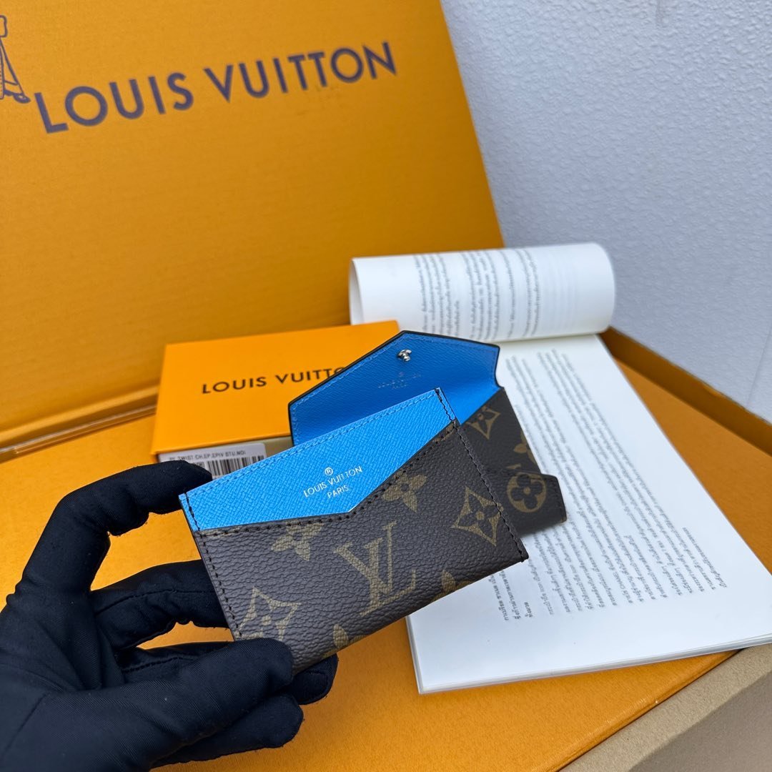 M12884 This card holder renews the envelope-style configuration of the original Kirigami Pochette Ms clutch bag, adding a new idea to the Colormania collection. The Monogram canvas combines a bright leather lining and a glossy snap-on, and the 2-in-1 compartment can be removed for use alone.