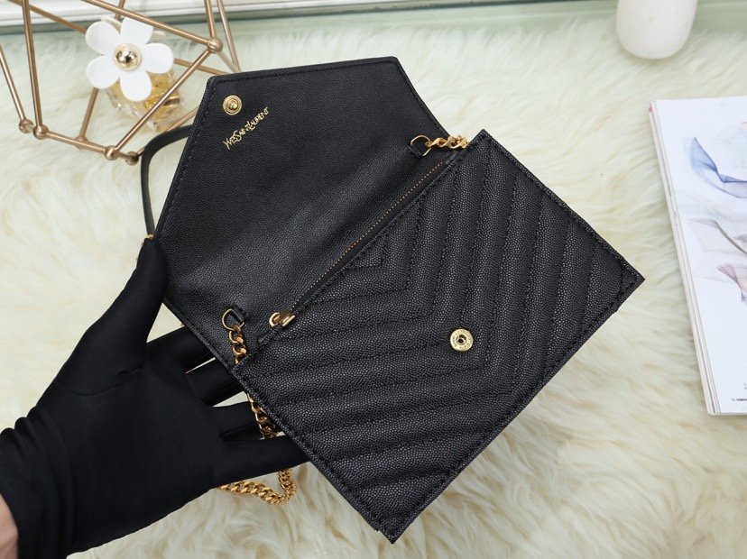 [New arrival] Saint Laurent small envelope bag. The latest caviar texture with custom hardware. An extremely practical small bag! The shoulder strap can be removed and used directly as a clutch. Made of imported cowhide leather, with exquisite craftsmanship and top-notch Taiwanese hardware. Model: 688918 apricot color with gold buckle!!! Size: 19*11.5*4 cm!