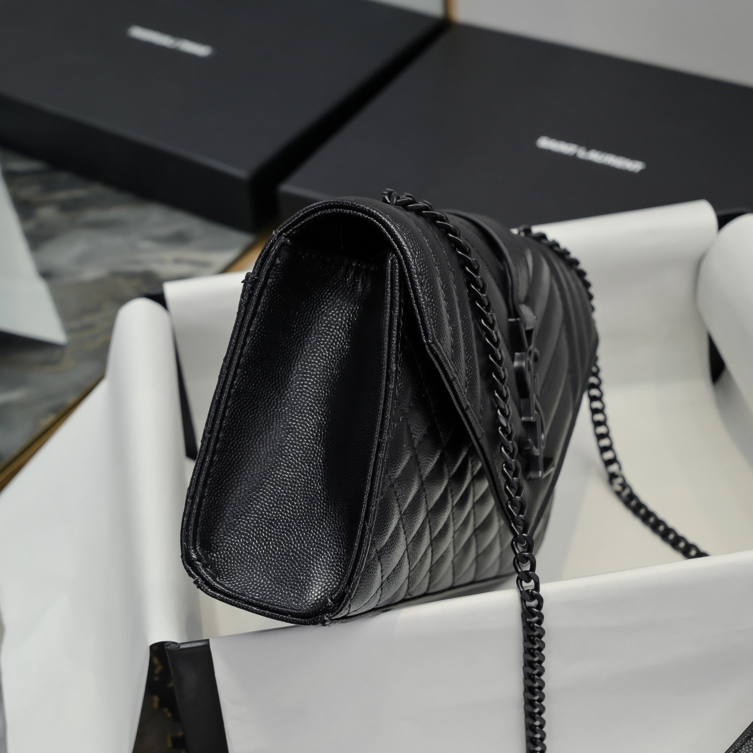 The classic is eternal. The V-pattern combined with rhombus-shaped caviar pattern is extremely beautiful. It is very wear-resistant. Italian cowhide with the eye-catching Y brand logo combines elegance and fashion. It is very versatile. The small size has a large capacity. Looking at its side, you can know that it can hold a lot.
