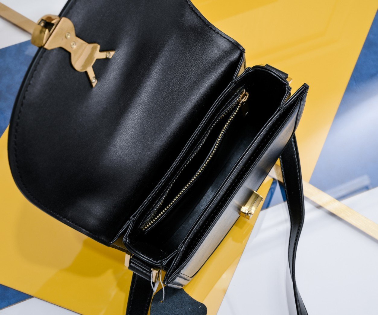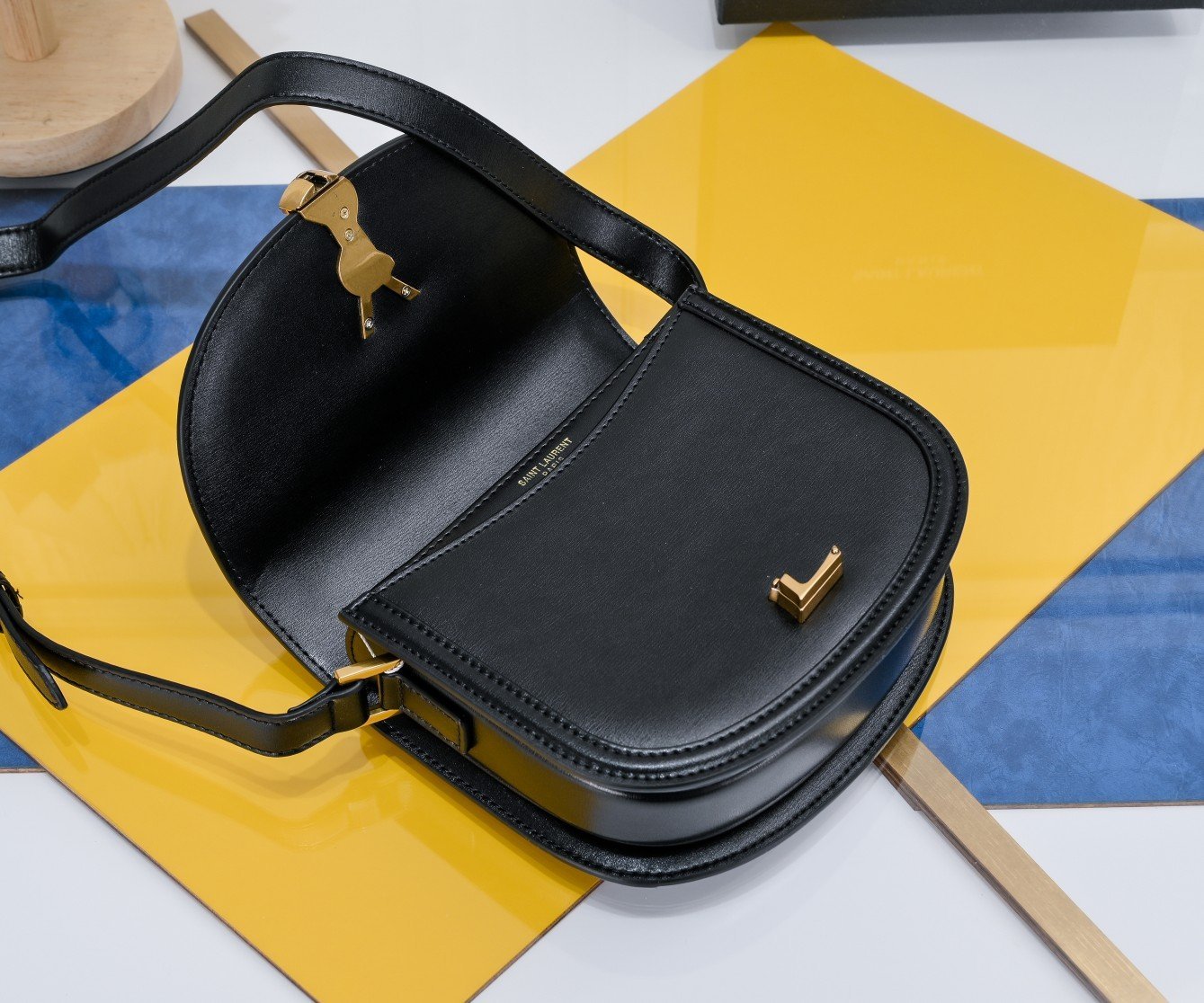 YSL new saddle bag with box. Cowhide leather. Can be slung diagonally or carried on the shoulder. With 3 inner compartments, inner zipper pocket and flat pocket. Original factory leather. Original factory hardware. Shiny retro buckle. Model number: 202326 brown with gold hardware. Size: 19×16×6 cm.