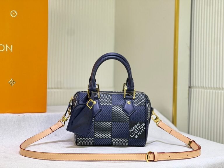 The handbag interprets the Speedy handbag of the 1930s with an exquisite design. It uses the Damier Pop coated canvas created by creative director Pharrell Williams to outline the classic lines and renders bright colors for the Damier checkerboard pattern. Size: 18x12x10cm.